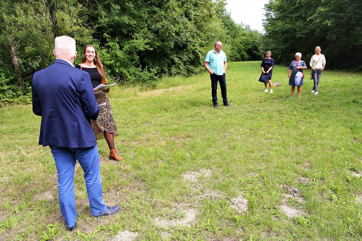 Gisterenmiddag overhandigde Myrthe op de locatie van het toekomstige beweegbos haar rapport aan André van Ast en wethouder Frank Hommel.